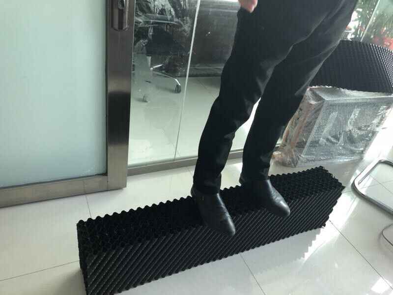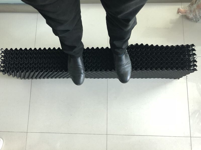 今天小編為了給大家的本公司生產(chǎn)的逆流方塔PVC填料,這是一款薄如紙的填料,可是你不能小看它,首先,不能因?yàn)樗谋《】此馁|(zhì)量,我們來看看這薄薄的填料能承受多少重量吧! 每張?zhí)盍隙己鼙?,每張?zhí)盍蟽H有0.3KG.小編把8張PVC填料粘了起來,所有的填料達(dá)到2.4KG,接下來小編演示團(tuán)結(jié)就是力量的說法,再薄的PVC填料,只要正反面粘貼起來,奇跡就發(fā)生了!小編體重65KG呢,站在粘貼好的8張?zhí)盍仙?,居然不變形,穩(wěn)如泰山,這質(zhì)量桿桿的。 小編推薦的,正是本公司賣得最火的逆流方塔PVC散熱填料,材料多薄已不是問題,問題是我們這質(zhì)量,不用自夸請(qǐng)看圖吧!