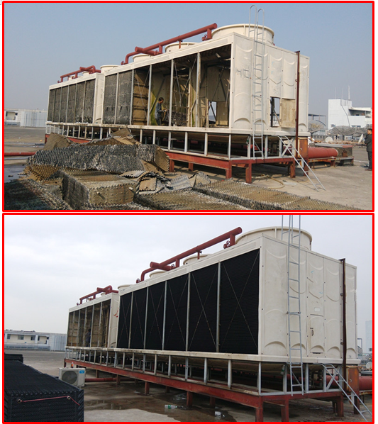鴻翔花園位于深圳老城區(qū)之一的羅湖蔡屋圍區(qū)松園路。由于冷卻塔使用壽命長(zhǎng),冷卻塔填料老化,需要更換冷卻塔填料。接下來(lái),根據(jù)鴻詳花園圓形冷卻塔填料的更換,介紹了拆卸和更換圓形冷卻塔填料的正確過(guò)程。 在清除